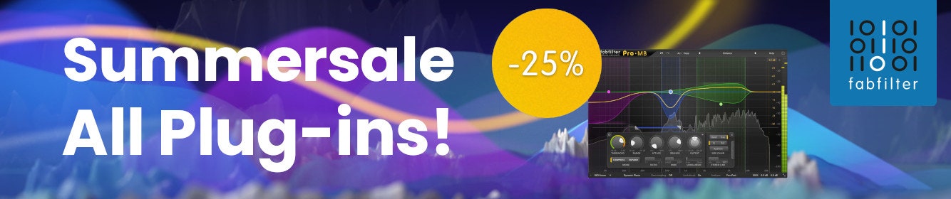 Nyt on täydellinen hetki päivittää tuotantoasi! FabFilterin Summer Sale tarjoaa 25 % alennuksen kaikista plugareista – halusitpa sitten tarkkaa taajuuskorjausta, läpinäkyvää kompressiota, luovaa säröä tai huippuluokan kaikua.