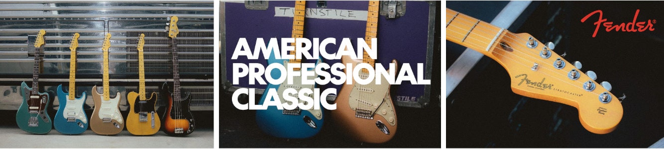 American Professional Classic yhdistää tutun Fender-fiiliksen tämän päivän soitettavuuden ja luotettavuuden vaatimuksiin. Ikoniset värit ja faded klassikkoviimeistelyt kohtaavat Coastline™-mikrofonit, Modern “C” -kaulan, 9,5" kaarevuuden, medium jumbo -nauhat, Greasebucket™ Tone System -järjestelmän, vintage-tyylisen hardwaren sekä ClassicGear™-virityskoneistot. Lopputuloksena on soitin, joka tuntuu heti oikealta ja kestää keikan toisensa jälkeen.