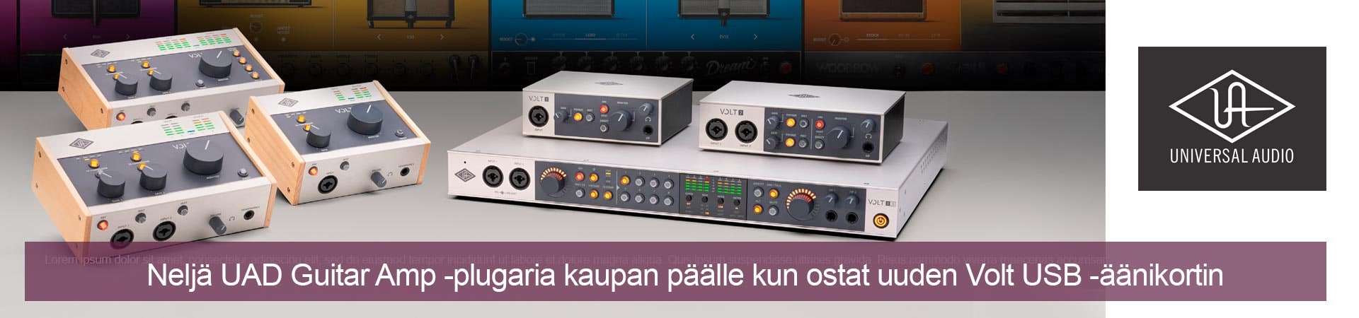 Saat neljä UAD Guitar Amp -plug-inia ilmaiseksi, kun hankit kampanjaan kuuluvan Volt USB Recording Studion. Ostamalla minkä tahansa kampanjaan kuuluvan Volt USB -äänikorttipaketin saat UAD Guitar Amp Bundle -paketin veloituksetta rajoitetun ajan.