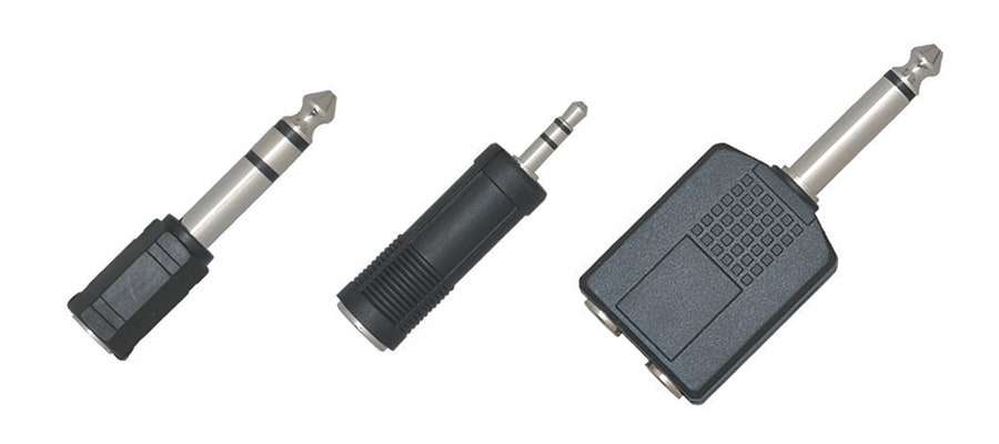 Kuulokesovitin, jossa 3,5mm stereojakki ja 6,3mm stereoplugi