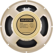 G12M-75 Creamback 16R, koko 12 tuumaa, tehonkesto 75 W, impedanssi 16 ohmia. Kermaisa soundi.