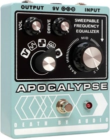 Death By Audio Apocalypse on monipuolinen fuzz-pedaali viidellä eri säröreitin vaihtoehdolla ja sweepattavalla...