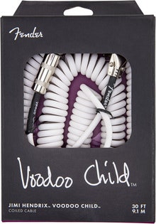 Fender Hendrix Voodoo Child -kierremallinen instrumenttikaapeli 9.1 m, White: vintage Pancake -kulmaplugi ja...