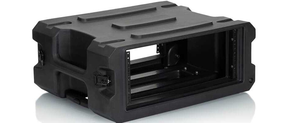 4U rack case, molded polyethylene, 19.25" depth, dual rack rails, zinc-plated steel, replaceable rails, twist...