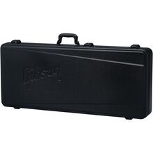 Hard case, Les Paul, polyethylene shell, TSA lock, blue plush interior, ATA-approved, vintage “Chainsaw”-style