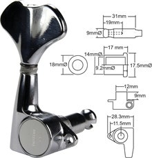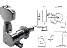 Locking Tuner set for electric guitar. 3 left, 3 right. Nickel.