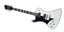 Hagströmin suunnittelutiimin ja ruotsalaisen Ghost-yhtyeen yhteistyönä syntynyt Fantomen-sähkökitara. Musta