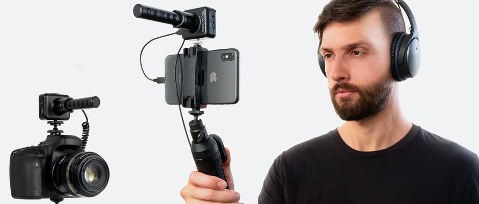 Taskukokoinen mikrofonietuaste, jonka avulla voit käyttää mikrofonejasi äänittämiseen iPhonella, iPadilla,...