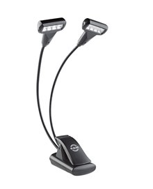 Kompakti ja monipuolinen nuottivalaisin, jossa on kaksi joutsenkaulan päässä olevaa kirkasta LED-valoa