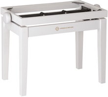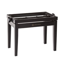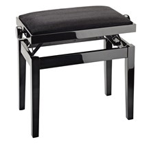 Klassinen kiiltäväpintainen pianotuoli, jonka istuinosa on päällystetty kulutusta kestävällä keinonahkalla