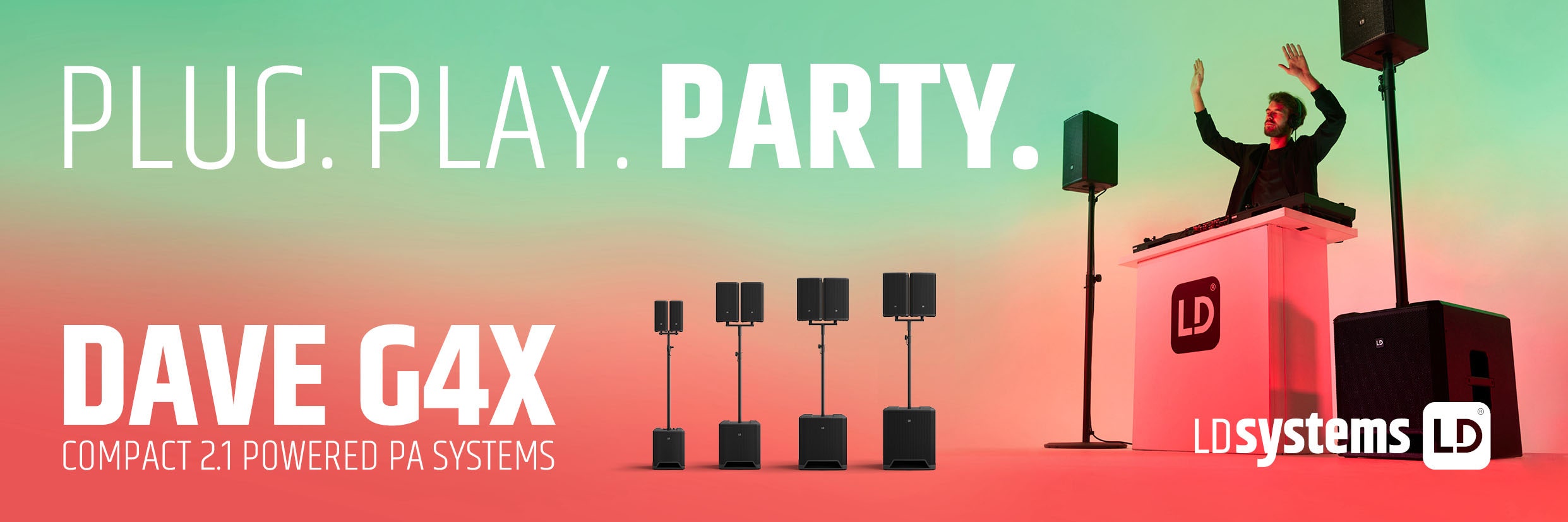 DAVE – nimi, joka LD Systemsillä tarkoittaa aktiivisia 2.1 PA-järjestelmiä. Nämä kompaktit äänentoistojärjestelmät tarjoavat kaiken, mitä DJ:t, muusikot, ravintolat ja koulut tarvitsevat; tehokkaan ja kompaktin PA-setin, hyvää soundia sekä modernit toiminnot. Uusi G4X-sarja muodostaa täydellisesti yhteensopivan, kompaktin järjestelmän ammattimaisilla akustisilla ominaisuuksilla. Kokoa vain Dave-settisi, kytke virrat päälle – ja nauti soundista! Lisäksi DAVE G4X -sarjassa on nyt integroitu 6-kanavainen mikseri, joka sisältää kaiun, sekä parannetut liitäntävaihtoehdot, kuten Bluetooth® ja SPDIF.