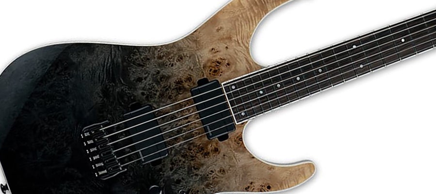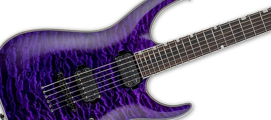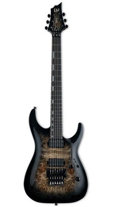LTD H-1001FR Black Natural Burst yhdistää burled poplar -kannen, Floyd Rose -tallan ja Seymour Duncan...