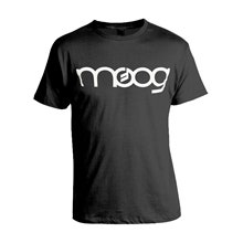 Klassinen Moog T-paita musta valkoisella logolla. Käsintehty Ashevillessä, Yhdysvalloissa. 100 % ekopuuvillaa