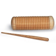 Nino Percussion NINO520 puinen guiro shaker. Guiroa voidaan käyttää myös shakkerinä. Mukana puinen malletti