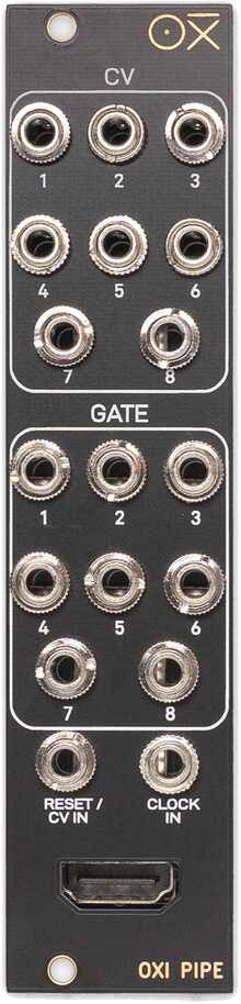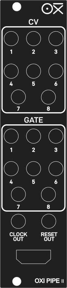 OXI Pipe MKI on kompakti 6HP Eurorack-breakoutmoduuli, joka ohjaa OXI Onen kaikki CV- ja Gate-signaalit...