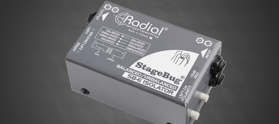 Radial StageBug SB-6 on kaksikanavainen passiivinen linjasignaalin erottaja, joka poistaa tehokkaasti hurinat...