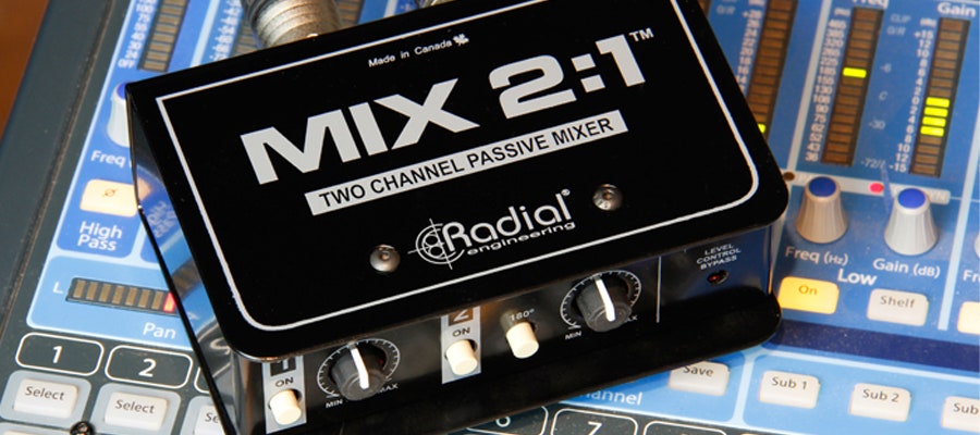 Radial Mix 2:1 on passiivinen audiomikseri, joka yhdistää kaksi balansoitua signaalia yhdeksi mono-ulostuloksi...