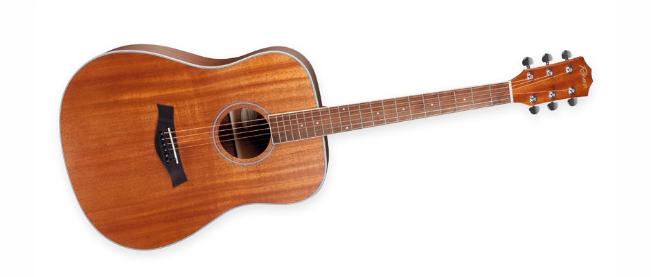 Täyspuisella mahonkikannella varustettu teräskielinen Dreadnought-kitara. Loistava hinta-laatusuhde.