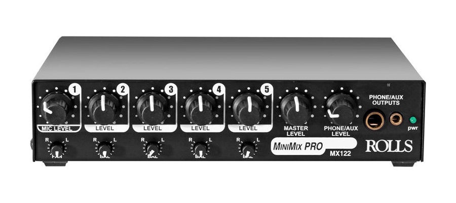 MX153, kompakti kahden mikrofonikanavan (XLR) ja kolmen linjatasoisen stereokanavan (RCA) pikkumikseri.