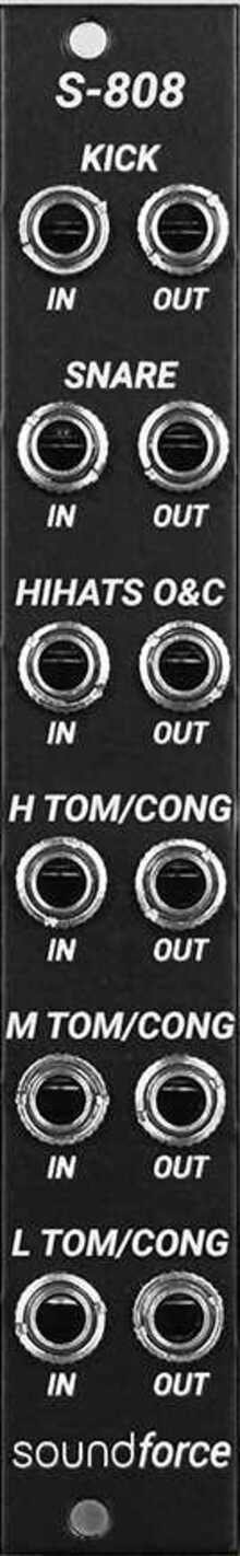 SoundForce S-808 on 4HP Eurorack-rumpumoduuli, joka tarjoaa kuusi autenttista TR-808-soundia (kick, snare,...