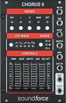 SoundForce Chorus 6 Black on Juno-henkinen 16HP BBD-chorus Eurorack-moduuli, joka tarjoaa monipuoliset...