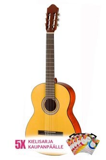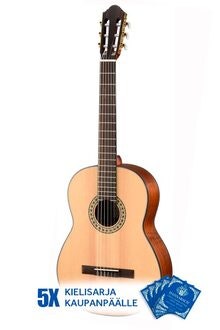 Klassinen kitara kokopuisella kuusikannella. Kaupanpäälle 5 settiä Hannabach kieliä!