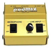 Passive mixer that combines a microphone with a stereo, line level audio source.
