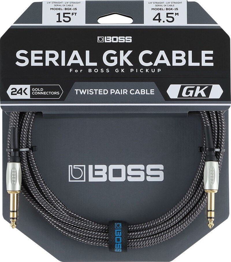 BOSS BGK-15 on erityisesti BOSS Guitar Synthesizer -tuotteiden Serial GK -liitäntää varten kehitetty digitaalikaapeli. 4.5 metrin pituinen BGK-15 sisältää suorat 6.3 mm:n TRS-liittimet ja tarjoaa luotettavan, korkean suorituskyvyn signaalinsiirron. Tämä kaapeli mahdollistaa optimaalisen yhteyden uusimpien BOSS -kitarasyntikkatuotteiden, kuten GM-800 -modulin ja GK-5/GK-5B -mikrofonien kanssa.