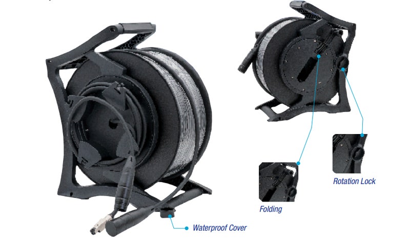 ”Network Cable with Reel” -sarja sisältää korkealaatuisia CAT6E STP -kaapeleita, jotka on siististi kierretty omalle kelalle. Nämä kaapelit ovat monipuolisia ja tukevat paitsi ”CAT-SNAKE”-yhteyksiä myös verkon ääni-, internet- ja muita signaaliyhteyksiä. Uudessa kaapelikelassa on taitettava kahva ja ”lukitus”-toiminto, joka estää tarpeettoman pyörimisen, sekä paikka muiden kodin laitteisiin kytkettyjen ylimääräisten kaapeleiden hallintaan. Kaapelin päässä on vedenpitävä suojus, joka suojaa tehokkaasti vedeltä, pölyltä jne.