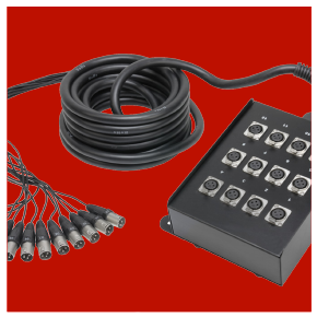 30m ammattitason kaukokaapeli, jossa 12 mikrofonikanavaa ja neljä XLR-paluuta