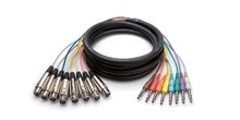 Monikanavainen kaapeli, 7 metriä. 8 x stereo TRS-liitintä molemmissa päissä (valetut). 8 eri väriä.