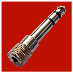 Metallinen kuulokesovitin, jossa 3,5mm stereojakki ja 6,3mm stereoplugi