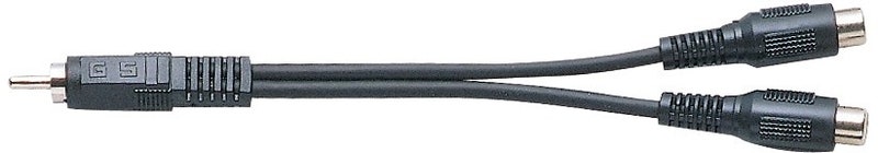 Käytännöllinen ja laadukas Y-kaapeli, joka jakaa signaalin yhdestä RCA-urosliittimestä kahteen RCA-naarasliittimeen.