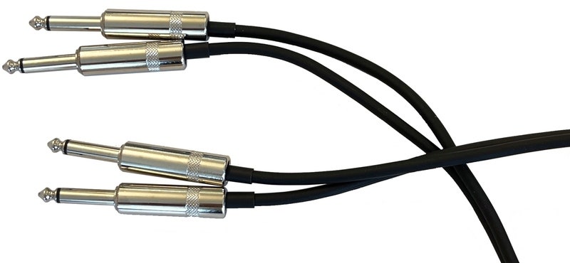 Tukeva kytkentäjohto, jonka molemmissa päissä on kaksi metallista 6,3mm monoplugia.