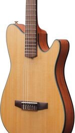 Tuotenumero 1094130Nylon-string, thinline cutaway, Sitka spruce, sapele, Nyatoh C-neck, walnut bridge/fretboard, Ibanez T-bar pickup, Custom electronics, D’Addario Coated, 648 mm scale