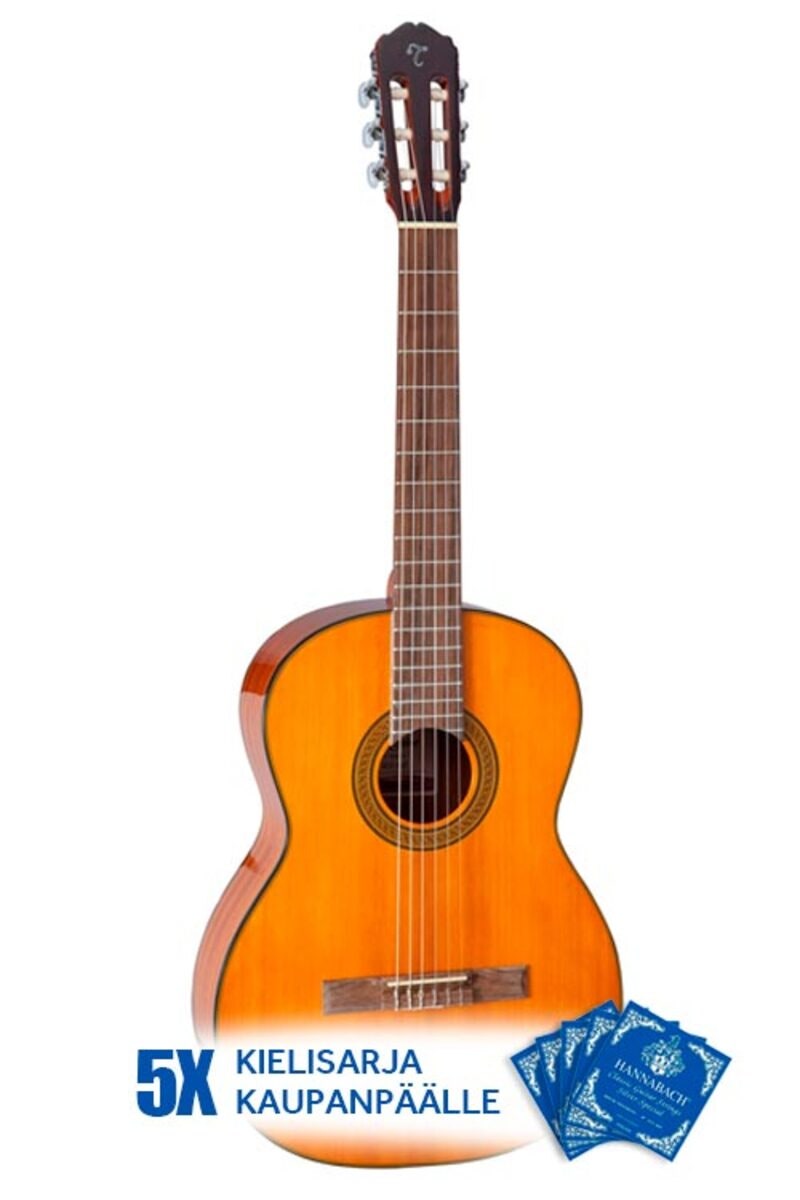 Tuotenumero 1093064Takamine GC3-NAT nylonkielinen kitara kokopuisella seetrikannella. Kaupanpäälle 5 settiä Hannabach kieliä!