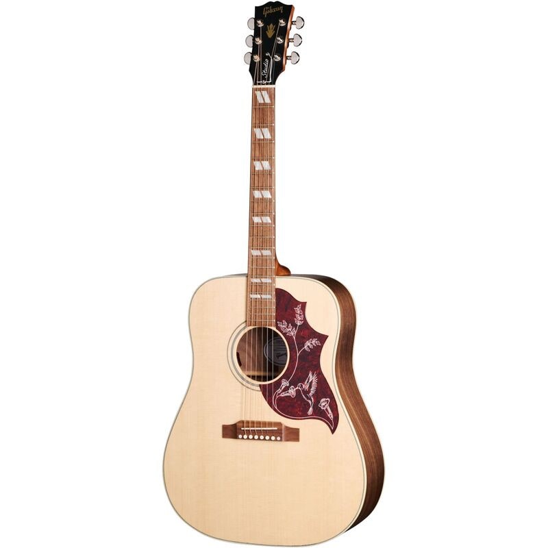 The Gibson Hummingbird Studio Walnut Natural continues Gibson’s tradition of world-famous square-shouldered acoustics. Handcrafted in Bozeman, Montana, this model pairs a solid Sitka spruce top with solid walnut back and sides, producing a warm, articulate tone that sits between maple’s brightness and rosewood’s depth. With its full-depth body, the Hummingbird Studio Walnut offers powerful projection and dynamic range for both strumming and fingerstyle players.