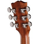 Kaula on utile-puuta ja muotoiltu Advanced Response -profiililla, joka asettuu käteen tasapainoisesti ilman että se tuntuu liian paksulta tai ohuelta. Otelauta on ruusupuuta, ja siinä on 20 nauhaa sekä helmiäispiste-upotukset, jotka ovat yksi J-45-mallin tunnusomaisista piirteistä. 16” otelautaradius tukee sujuvaa soittoa ja nopeita juoksutuksia. Mensuuri on 24,75”, mikä tuo kieliin joustavan ja ilmeikkään tuntuman.