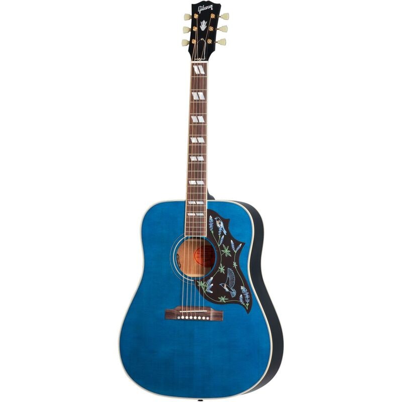 The Gibson Miranda Lambert Bluebird Bluebonnet celebrates one of country music’s most influential voices. Based on the legendary Hummingbird design, it features a square-shouldered mahogany body paired with a Sitka spruce top. Its vivid Bluebonnet nitrocellulose finish pays tribute to the Texas state flower, while the custom Bluebird pickguard honors Lambert’s hit song.