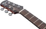 The guitar features a solid Okoume top with Okoume back and sides, providing a woody tone with soft dynamic response for fingerstyle and clear projection when played with a pick. The specially designed X-M bracing enhances tonal balance and projection, while the cutaway body allows easier access to higher frets.