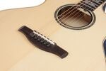 The AE body with cutaway provides a comfortable playing position and balanced tone for both studio and stage. Abalone and maple inlays, along with the rosette and soundhole binding, complete the design. Gold-colored tuners and Ibanez Advantage bridge pins are used for durability and precision.
