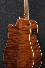 The cutaway dreadnought body allows easier access to higher frets. Other details include a bone nut and compensated saddle, chrome die-cast tuners, wooden rosette, and Ibanez Advantage™ bridge pins for convenient string changes. The Open Pore Semi Gloss finish preserves the natural resonance of the tonewoods.