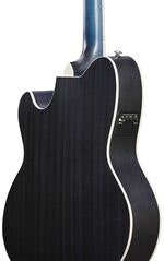 Tuotenumero 1086210Acoustic Guitar, 6 Strings, Talman Double Cutaway Body, Flamed Maple Top, 648mm Scale, nut width: 42mm, Ibanez AP2 Magnetic Pickup, Color: Open Pore Denim Blue