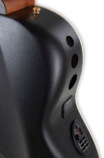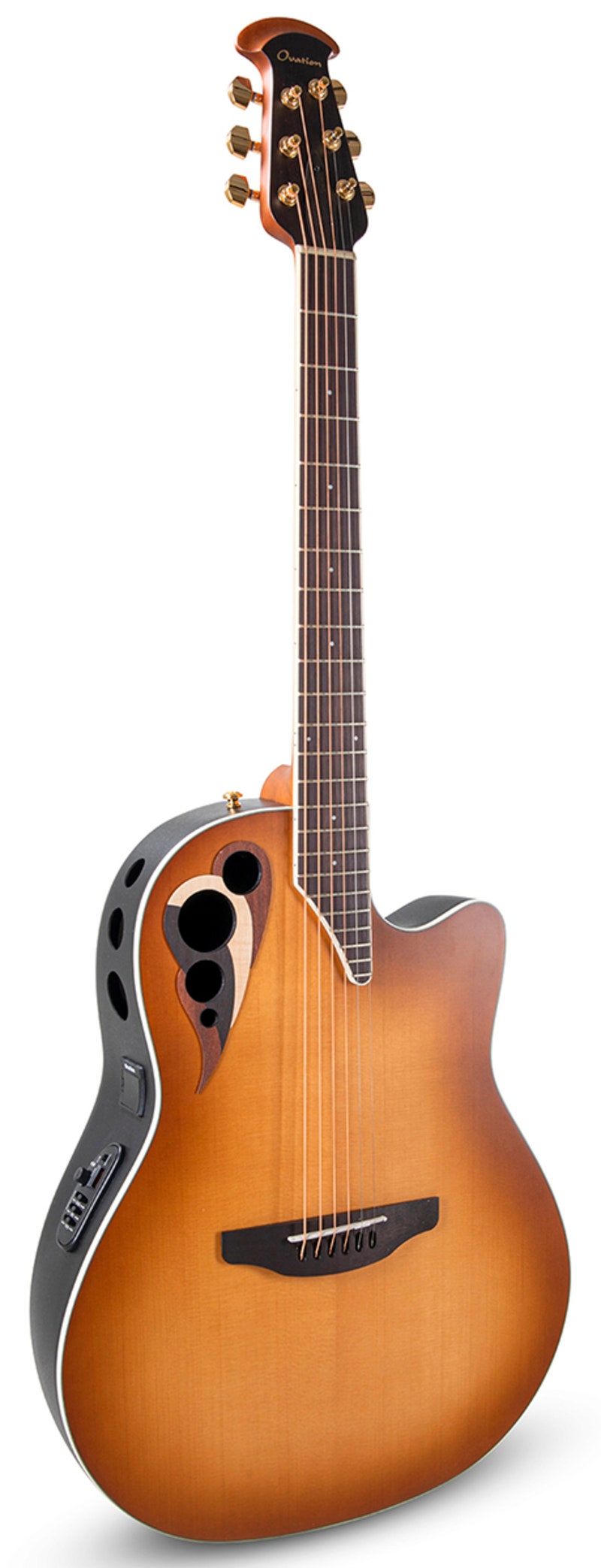 Tärkeä osa kitaran ilmettä ja ääntä on Ovationin ikoninen Multi Soundhole -rakenne, joka jakaa ääniaukot kanteen epäsymmetrisesti – ja täydentyy tässä mallissa lisäporteilla rungon sivuilla, jotka vahvistavat äänen suuntaavuutta ja ilmavuutta. Samalla Quintad Elite -rimoitus, joka on kehitetty Ovationin USA-malleihin, antaa kannelle erinomaisen vasteen ja kontrolloidun resonanssin.