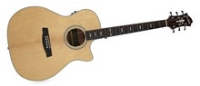 Other great features include a synthetic bone nut and bridge saddle, laurel headcap, abalone rosette and mother-of-pearl dot inlays, gold die-cast tuners and a beautiful gloss finish.