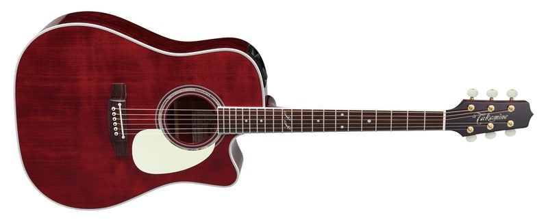 The JJ325SRC dreadnought features a solid spruce top with bubinga back and sides. The guitar is voiced to cover a broad tonal spectrum with depth for power and a shimmering upper midrange for articulation and clarity and features a gloss red finish, JJ inlay at the 12th fret and gold tuners with ivory buttons on the keys.