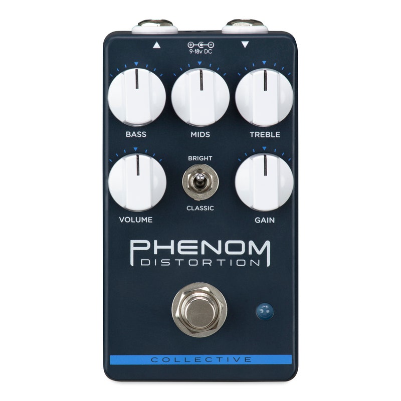 The Phenom Distortion is a dynamic distortion pedal that offers a range of tones from a deep, punchy rhythm sound to an ultra-responsive lead tone perfect for soaring solos and crisp harmonics. It has a flexible voicing switch that selects either bright or classic modes, independent gain and volume controls, and a powerful 3-band EQ.