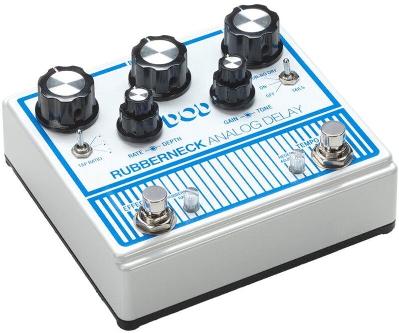 Tuotenumero 1051673DOD Rubberneck on huippuluokan analoginen viivepedaali, jossa on tap tempo, modulaatio, feedback loop, Rubbernecking-efekti ja laajat säätömahdollisuudet – täydellinen valinta luovalle kitaristille.