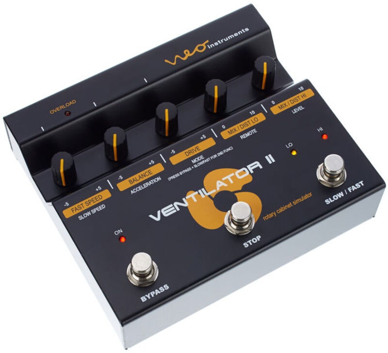 NEO Instruments Ventilator II tuo legendaarisen Leslie Model 122 -pyörivän kaiuttimen soundin helposti pedaalilautaan. Tämä pedaali ei ainoastaan simuloi efektin ääntä vaan myös sen käyttäytymistä: erikseen emuloidut diskantti- ja bassorotorit, säädettävä kiihtyvyys sekä ajuriosio autenttiseen putkisäröön tekevät tästä markkinoiden tarkimman Leslie-simulaattorin.