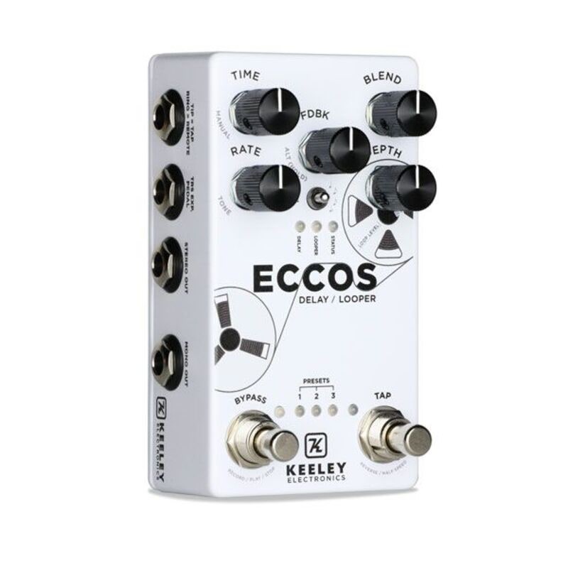 Eccos tarjoaa jopa 1,5 sekuntia upeaa, nauhakaikuun perustuvaa delayta, jossa on flanger- ja vibrato-modulaatiota. Sen avulla loihdit niin klassiset slapback-viiveet kuin unenomaiset stereo-pingpong-maisemat. Lisäksi pedaali toimii täysiverisenä stereoloopperina, jossa on luovia toimintoja kuten Reverse, Half-Speed ja One-Shot.
